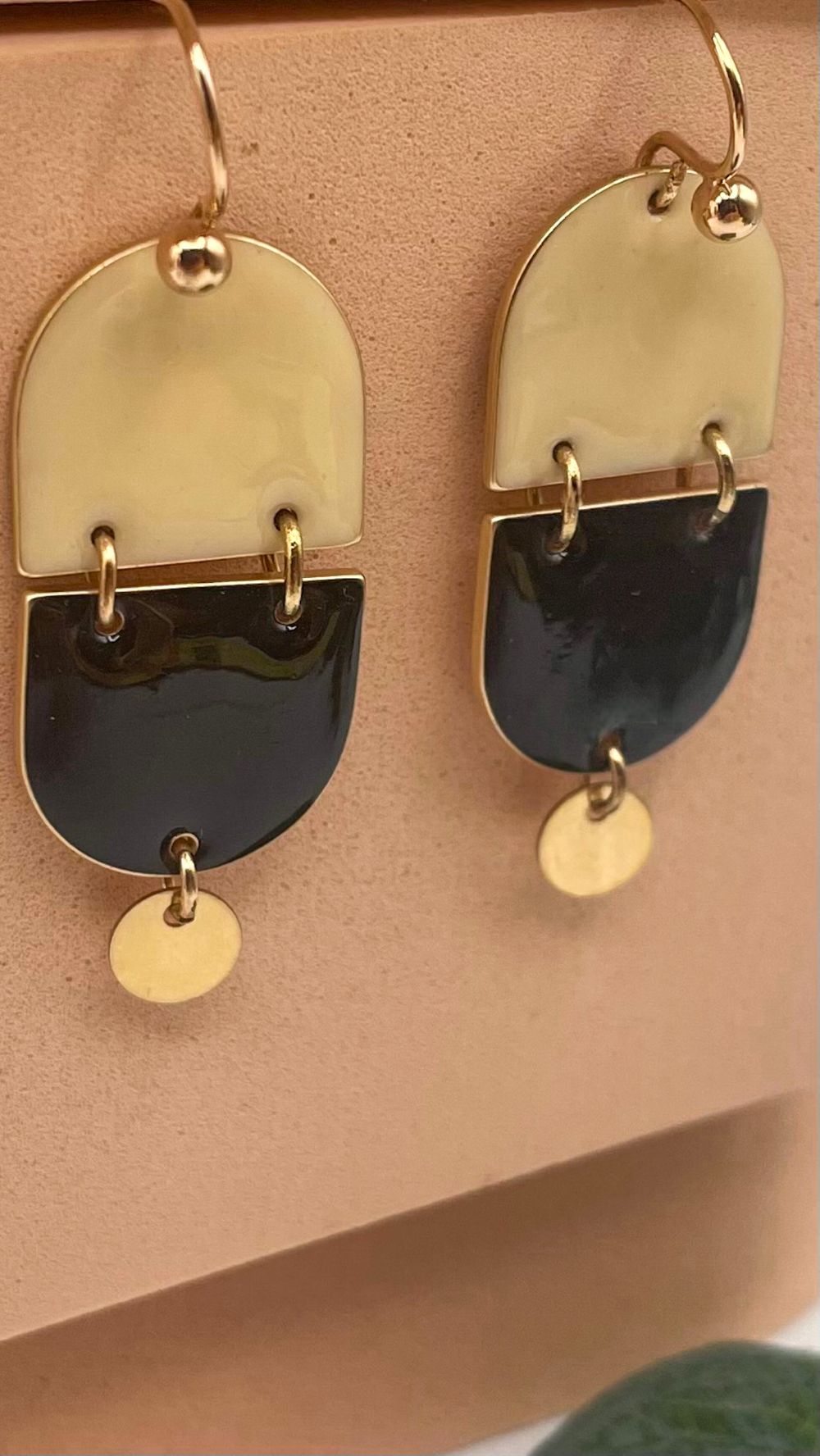 Élégance Monochrome : Boucles d’Oreilles Plaqué Or avec résine de couleur Noire et Blanche